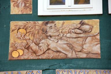 Keywords: truss fachwerkhaus home building art mural money gold man