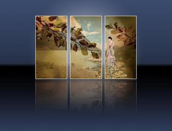 Keywords: tryptic tree branch woman mountains background beach reflections abstract water lake scenic