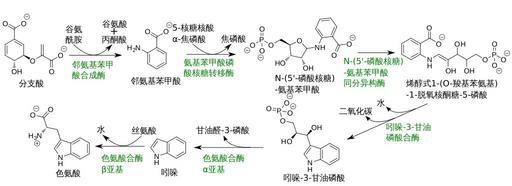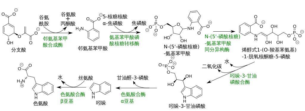 | Keywords: Tryptophan biosynthesis (zh-cn).svg Created myself using ChemDraw based on Yikrazuul's Image Tryptophanesynthesis png 色氨酸合成 Tryptophan_biosynthesis png 2011-02-14 13 34 UTC Tryptophan_biosynthesis png Original uploader was Boghog2 at http //en wikipedia org en wikipedia derivative work Shakiestone <span class signature-talk >talk</span> file Tryptophan biosynthesis en svg translation Tryptophan_biosynthesis png PD-user-w Original upload log This image is a derivative work of the following images File Tryptophan_biosynthesis png licensed with PD-user-w 2009-06-07T07 20 45Z File Upload Bot Magnus Manske 3599x1214 218229 Bytes <nowiki> en wikipedia subst CURRENTYEAR subst CURRENTMONTHNAME subst CURRENTDAY Created myself using ChemDraw based on Yikrazuul's Image Tryptophanesynth</nowiki> Uploaded with derivativeFX Tryptophan |