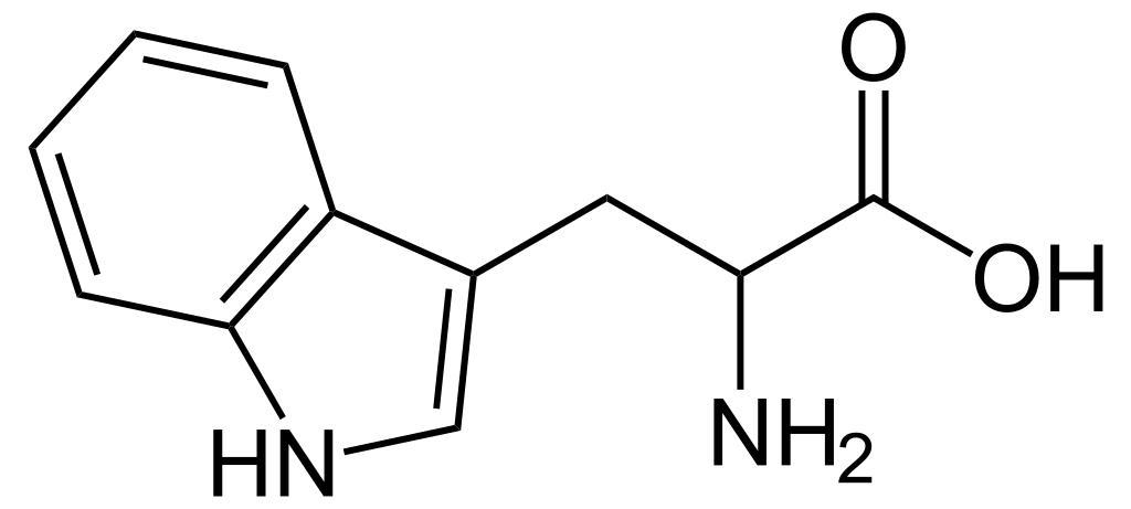Keywords: Tryptophan - Tryptophan.svg Struktur von Tryptophan Structure of tryptophan own 2007-02-04 NEUROtiker Other fields A + Tryptophan