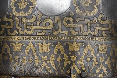 | Keywords: Tsar Ivans hjälm. Detalj på en av de 4 textrader som löper runt hjälmen - Livrustkammaren - 87049.tif LSH artwork uk Шолом московського князя Івана Васильовича 1533 ік en The helmet of a Muscovy Ivan the Terrible 1533 Spetsig hjälm av stål med påslagen gulddekor Nertill en ca 35 mm bred rand med symmetrisk rankdekor där blommor och blad är täckta av små guldbågar Därovanför ett 5 mm brett band med guldkanter och rankdekor där bladen är helt av guld I bandet är utsparade fält med spetsiga ändar vartannat med bladrankor vartannat med gammalrysk guldtext fyra textfält Hjälm som tillhört furst Ivan Vasiljevitj son till storfursten Vasilij Ivanovitj herre och hela Rysslands självhärskare Därovanför ett band b 20-25 mm med arabisk-liknande skrifttecken med breda staplar med påslagna guldbågar och breda punsade kantlinjer urspr täckta av silver Därovanför uppåt avsmalnande fält med bågformig avslutning nertill i form av en påslagen silverlinje vartannat fält blankt vartannat med bladrankor av guld Hjälmklockan avslutad upptill med ett band b 25 mm med bladrankor <br/>Längs nederkanten fastnitat med nitar med kulformiga huvuden en något profilerad rundad mässingslist listen saknas på tre ställen Upptill en konisk spets l 108 avslutad med en snedräfflad kula på spetsen nertill övre delen av klockans rankdekor därovanför ett band med rankdekor b 15 mm Övre dleen av spetsen schackrutig med långa rektangulära blanka och rankdekorerade fält dekoren delvis utsliten Spetsen är fastnitad på platta som förts upp i hjälmklockan underifrån men är nu rörlig runt aeln original caption Tsar Ivans hjälm Detalj på en av de 4 textrader som löper runt hjälmen LRK 20389<br/> Nyckelord Rustningshjälm Tsar Ivan IV Detalj Blankvapen Föremålsbild Erövringen av Warszawa Stora oredan<br/> Stora oredan Moskwa Slaget vid Lode ca 1533 steel - silver - brass - gold g 1180 size mm 190 minsta size mm 190 största size mm 380 LRK Ivan IV av Ryssland tsar Basutställning utställning i Moskwa 1965 Moskwa Livrustkammarens basutställning 1978 Gustav II Adolf 350 år efter Lützen 1982-1984 Islamiskt i de kungliga samlingarna 1984 Kungens lockpipa 1995-1996 Karl XII och Peter den store 1998-1999 The Moscow Kremlin Reflected in its 800-Years History 2004 Der Kreml Gottesruhm u Zarenpracht 2004 From Tsar to Emperor Moscow - Saint Petersburg 2005-2006 Art of Ivan the Terrible's Age arbets- namn 2007-2008 Krigsbyte 2007-2008 State Museum of the Moscow Kremlin + Astrakhan Historico-Architectural Museum 2009 Sainte Russie de la Rus de Kiev à la Russie de Pierre le Grand Louvren 2010 Ryssland och Sverige under 1600-talet Basutställning place of origin original filename lm_dig4688_20389 56957 inventory number LRK 20389 87049 CC-BY-SA Jens Mohr <gallery caption Different images of same object > File Detalj tsar Ivans hjälm - Livrustkammaren - 8870 tif File Hjälm Oruzejnaja Palata Moskva ca 1533 - Livrustkammaren - 17456 tif File Tsar Ivans hjälm Detalj på en av de 4 textrader som löper runt hjälmen - Livrustkammaren - 87048 tif File Tsar Ivans hjälm - Livrustkammaren - 87045 tif File Detalj tsar Ivans hjälm - Livrustkammaren - 311 tif File Tsar Ivans hjälm - Livrustkammaren - 87046 tif File Tsar Ivans hjälm - Livrustkammaren - 3 tif File Tsar Ivans hjälm Detalj på en av de 4 textrader som löper runt hjälmen - Livrustkammaren - 87050 tif File Tsar Ivans hjälm Detalj på en av de 4 textrader som löper runt hjälmen - Livrustkammaren - 87047 tif </gallery> Jens Mohr Russian medieval helmets Military helmet images from Livrustkammaren Color images from Livrustkammaren Media contributed by LSH unmatched event Media contributed by LSH dim-with multiple size templates Media contributed by LSH unmatched keyword Media contributed by LSH 2013-10 |