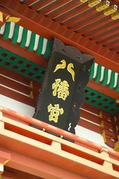 Keywords: TsurugaokaHachiman4265.jpg Tablet on the gable at Tsurugaoka Hachiman Shinto shrine in Kamakura Kanagawa Prefecture Japan I took this photo Plaques of shrine names in Japan Tsurugaoka Hachiman-gū