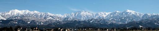 Keywords: Tsurugi-Kekachi-Dainichi.jpg en Tsurugidake Kekachi Mts and Dainichi Mts ja 剱岳と毛 三山 大日 峰 Own 2010-04-11 Hanoitaxi Mountains of Toyama prefecture