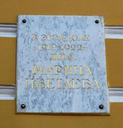 Keywords: Tsvetaeva-Moscow(4).jpg en Plaque Marina Tsvetaeva Moscow Borisoglebsky Lane 6 ru Памятная доска на доме-музее а ины Цветаевой осква Бо исоглебский пе 6 own Vladimir OKC 2011-04-17 Cc-zero Marina Tsvetaeva Memorial wall signs in Moscow