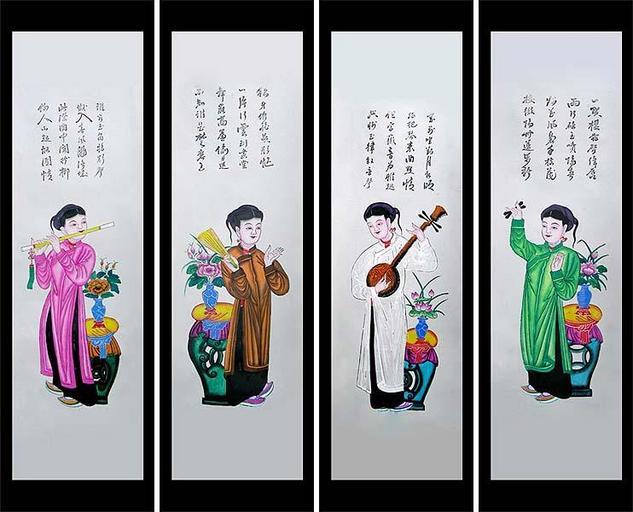 | Keywords: Tu binh.JPG en Tứ bình Four female musicians a popular example of en Hang Trong painting The author is unknown because this is a traditional genre of painting dated back to the 17th century vuontaodan net/Forums/tm aspx m 1532 Unknown traditional painting dated back to the 17th century PD-old Hang Trong painting Vietnamese literati paintings |