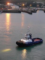 | Keywords: Tugboat.JPG en Tugboat DHB Doughty in Dover England at night United Kingdom of Great Britain IMO - 9190468 MMSI - 232004783 ENI - 902898 Call Sign - MZGA8 Casco built by PO SevMash Predpriyatiye at Severodvinsk RUS Completed by Damen Shipyards at Gorinchem Netherlands March 2000 Delivered to Barclays Mercantile Business Finance Ltd manager DHB - Dover Harbour Board at Dover June 1st 2000 Named by Dover Harbour Board members Margaret Llewellyn and Cynthia Alers Length - 30 82m overall 101 09 ft Breadth - 10 20m 33 46 ft Depth - 4 80m 15 75 ft Draught - 4m 13 0 ft maximum Tonnage - 304 gross 91 net Engines - 2 x 4tew 6cyl Wartsilla 6L26 Propulsion - Twin Aquamaster Azimuth Speed - 12 0 - 13 5 knots max Power range total - 2500 - 3600 bkW 3353 - 4828 bhp Total Output - 3 600 kW at 1 000rpm Bollard Pull - 35 7 - 55 8 tonnes Total tank capacity - 231 m³ Sister Ship DHB Dauntless Own Pmarshal 2006-09-24 DHB Doughty tugboat 2000 |