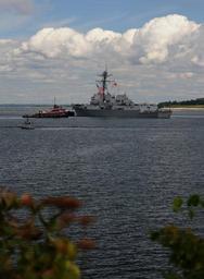 | Keywords: Tugboats guide the USS Jason Dunham into Newport, Rhode Island..jpg Tugboats guide the USS Jason Dunham into Newport Rhode Island Tugboats assigned to Naval Station NAVSTA Newport assist the Arleigh Burke-class guided-missile destroyer USS Jason Dunham DDG 109 home ported in Norfolk Va as she prepares to moor pier side at NAVSTA Newport in Newport Rhode Island USS Jason Dunham San Antonio-class amphibious transport dock USS Arlington LPD 24 Joint High Speed Vessel USNS Choctaw County JHSV 2 and Los Angeles-class submarine USS Hartford SSN 768 are currently in Newport representing their respective classes of ships in support of Chief of Naval Operations ™ 21st International Seapower Symposium ISS at U S Naval War College in Newport Rhode Island More than 170 senior officers and civilians from more than 100 countries including many of the senior-most officers from those countries ™ navies are currently attending the biennial event Sept 16-19 This year ™s theme is Global Solutions to Common Maritime Challenges and will feature guest speakers and three panel discussions to explore shared global concerns Future Trends in Maritime Security Maritime Implications of Climate Change and Enhancing Coalition Operations First held in 1969 ISS has become the largest gathering of maritime leaders in history and provides a forum for senior international leaders to create and solidify solutions to shared challenges and threats in ways that are in the interests of individual nations U S Navy photo by Chief Mass Communication Specialist James E Foehl/Released 140915-N-PX557-002 Navy https //www flickr com/photos/usnavalwarcollegeri/15091225068/ https //www flickr com/photos/usnavalwarcollegeri/15091225068/ 140915-N-PX557-002 2014-09-15 07 52 https //www flickr com/people/50780602 N04 U S Naval War College PD-USGov-Military-Navy cc-by-2 0 U S Naval War College http //flickr com/photos/50780602 N04/15091225068 2014-09-24 12 03 11 cc-by-2 0 Naval Station Newport USS Jason Dunham DDG-109 |