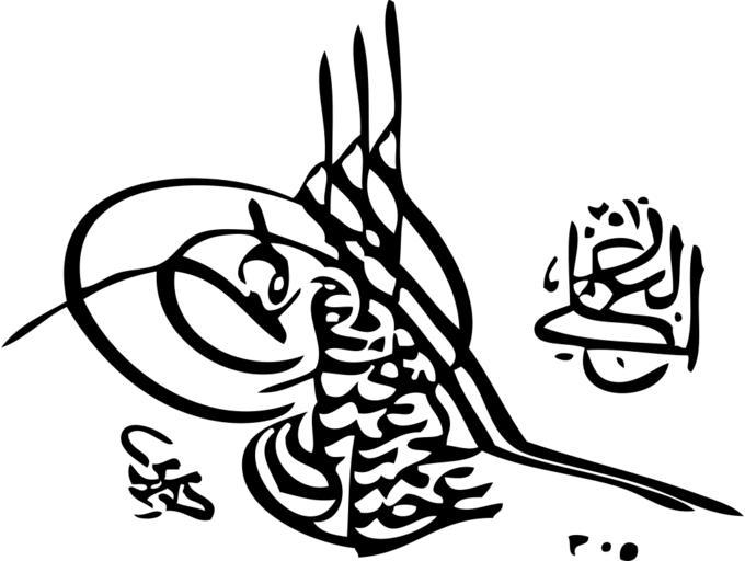| Keywords: Tughra of Abdülhamid II.svg Tughra i e seal or signature of Abdülhamid II Sultan of the Ottoman Empire 1876-1909 An explanation of the different elements composing the tughra can be found http //www tugra org/okunus/pages/34 htm here The original PDF document from which this tughra was cropped is also hosted on Commons File Tughras pdf Vector produced 2011-07-18 / Original - Published and used between 1876 and 1909 on all Ottoman official documents and coins Egypt State Information Service http //www sis gov eg/PDF/Ar/History/0809000000000000210002 pdf Calligrapher Sami Efendi http //www tugra org/en/muhtesem asp Vectorised by Fred the Oyster PD-Ottoman There are three other versions of Abdülhamid II's tughra that are currently hosted on Commons in different formats GIF PNG SVG However all of them are inaccurate since they do not depict the decorative motif in the lower left part of the tughra 100px black and white 100px vector graphics 100px jpeg with missing motif PD-Art Uploaded with UploadWizard Tughra of Abdül Hamid II Tughras from Egypt State Information Service Images created by Fred the Oyster Sami Efendi |