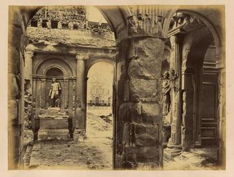 | Keywords: Tuileries Palace- Interior View WDL1263.png Artwork ru Б аквейе Б уно 1823 1875 гг fr Braquehais Bruno 1823-1875 en Braquehais Bruno 1823-1875 zh 布鲁诺·布拉奇海 ,1823-1875 年 pt Braquehais Bruno 1823-1875 ar براكهيه برونو، 1823-1875 es Braquehais Bruno 1823-1875 ru Дво ец Тюиль и внут енний вид fr Palais des Tuileries Vue intérieure en Tuileries Palace Interior View zh 伊勒里宫:内景 pt Palácio das Tulherias visão interna ar قصر التيليري منظر داخلي ru П ичиной ф анко-п усской войны стал ост нап яженности в отношениях между Ф анцией и П уссией в 1860-х гг Ф анция п и импе ато е аполеоне III была полна ешимости п ове ить астущую силу П уссии и отомстить за то что она ассмат ивала как яд дипломатических унижений П уссия п и канцле е Отто фон Бисма ке считала что война ге манских госуда ств п отив Ф анции под уководством П уссии станет ешающим шагом к созданию единой Ге манской импе ии Конфликт начался 19 июля 1870 г когда Ф анция объявила войну Ф анцузская а мия оказалась ужасно неподготовленной и поте пела сок ушительное по ажение в битве п и Седане отк ыв до огу на Па иж К 19 сентяб я немцкие войска полностью ок ужили го од и начали осаду кото ая п одлилась более четы ех месяцев От езанные от поставок п одовольствия из сельской местности па ижане пытались выжить питаясь собаками кошками и даже животными из па ижского зоопа ка Де евья на Елисейских полях и в па ках были вы ублены и использованы в качестве топлива 5 янва я немецкие войска начали бомба ди овку го ода кото ая п одолжалась по несколько часов каждую ночь в течение 23 суток а ок естности Па ижа было сб ошено около 12 000 сна ядов кото ые убили около 400 человек Па иж сдался 28 янва я в сущности положив конец войне За по ажением ф анцузов последовало на одное восстание и установление в а те 1871г Па ижской коммуны еволюционного п авительства сфо ми ованного в соответствии с ана хистскими и социалистическими п инципами Коммуна была жестоко подавлена в мае 1871 г ф анцузскими войсками п авительства Адольфа Тье а Во в емя неп одолжительного конт оля над Па ижем коммуна ы аз ушали импе ато скую колонну на Вандомской площади Подавление коммуны п ивело к дальнейшим значительным аз ушениям в го оде когда коммуна ы подожгли дво ец Тюиль и Лув и д угие здания К оме того многие здания пост адали или были аз ушены во в емя отчаянной пе ест елки между коммуна ами и конт еволюционными силами Siege de Paris 1870 1871 Осада Па ижа 1870 1871 гг п едставляет собой альбом из 110 фотог афий сделанных Огюстом Б уно Б аквейе 1823 1875 гг ф анцузским фотог афом и п ог ессивным фотожу налистом документи овавшим осаду и последствия бомба ди овок а также аз ушения п оизошедшие во в емя Па ижской коммуны <br>Замки и дво цы; Ф анко-п усская война 1870 1871 гг ; Память ми а; Скульпту а; Дво ец Тюиль и Па иж Ф анция ; Уще б нанесенный войной fr La guerre franco-allemande fut provoquée par l escalade des tensions entre la France et la Prusse dans les années 1860 La France sous l empereur Napoléon III était déterminée à contenir la croissance de la puissance prussienne et à venger ce qui était considéré comme une série d humiliations diplomatiques La Prusse sous le chancelier Otto von Bismarck considérait qu une guerre dirigée par la Prusse et menée par les États allemands contre la France serait un acte décisif menant à la création d un empire allemand unifié Le conflit débuta le 19 juillet 1870 jour où la France déclara la guerre L armée française s avéra terriblement mal préparée et subit une défaite désastreuse lors de la bataille de Sedan laissant la voie libre vers Paris Le 19 septembre les Allemands encerclèrent complètement la ville et commencèrent un siège qui allait durer plus de quatre mois Coupés du ravitaillement provenant de la campagne les Parisiens survécurent en mangeant les chiens les chats et même la plupart des animaux du zoo de Paris Les arbres des Champs-Élysées et des parcs furent coupés et brûlés pour servir de combustible Le 5 janvier les armées allemandes entreprirent le bombardement de la ville qui dura plus
