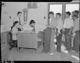 | Keywords: Tule Lake Relocation Center, Newell, California. May Miyamoto, evacuee clerk and Hyrum L. Clark, pr . . . - NARA - 538222.jpg Scope and content The full caption for this photograph reads Tule Lake Relocation Center Newell California May Miyamoto evacuee clerk and Hyrum L Clark project personnel clerk distribute identification tags to be used in conjuction with the first pay day at this War Relocation Authority Center General notes 538222 Local identifier 210-G-D23 Department of the Interior War Relocation Authority 02/16/1944 - 06/30/1946 NARA-Author Stewart Francis War Relocation Authority photographer Photographer 8464475 <br /> Still Picture Records Section Special Media Archives Services Division NWCS-S National Archives at College Park 8601 Adelphi Road College Park MD 20740-6001 1942-07-01 Record group Record Group 210 Records of the War Relocation Authority 1941 - 1989 Record group ARC 537 Central Photographic File of the War Relocation Authority compiled 1942 - 1945 Series ARC 536000 File unit File unit ARC Variant control numbers NAIL Control Number NWDNS-210-G-D23 Other versions <gallery> File Tule_Lake_Relocation_Center _Newell _California _May_Miyamoto _evacuee_clerk_and_Hyrum_L _Clark _pr_ _ _ _-_NARA_-_538222 tif tif File Tule_Lake_Relocation_Center _Newell _California _May_Miyamoto _evacuee_clerk_and_Hyrum_L _Clark _pr_ _ _ _-_NARA_-_538222 jpg jpg </gallery> NARA-cooperation PD-USGov Tule Lake War Relocation Center |