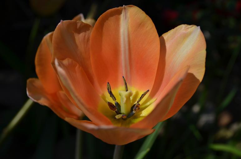 Keywords: tulip blossom bloom flower orange pistil
