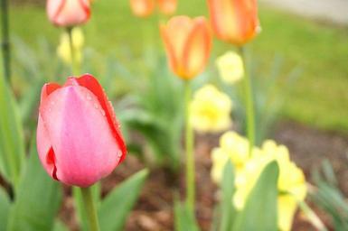 Keywords: tulip colorful pastels pink flower bed patient spring flower garden fresh dewy colors soft delicate petals bulb bulbs bloom blossom floral tulips