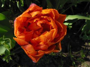 Keywords: tulip double tulips orange close-up filled warm color colored garden plants flowers bulbous plants green brown beautiful spring summer