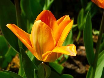 Keywords: tulip flower perennial orange background spring blossom yellow sunny bulb flower variegated tulip nature happy fresh healthy seasonal colorful smile euphoric golden