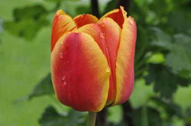 Keywords: tulip flower schnittblume spring flower blossom bloom red yellow drop of water rainy day close