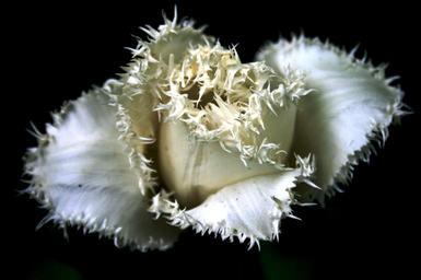 Keywords: tulip flower white frayed edges frilled petals bloom detail spring