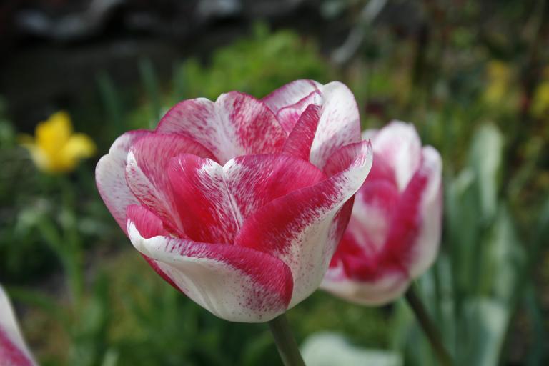 Keywords: tulip spring white pink flamed plant spring flower close flower garden blossom bloom nature