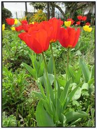Keywords: jardin rouge jaune canon ixus plant flower outdoor tulip photo border flowerbed