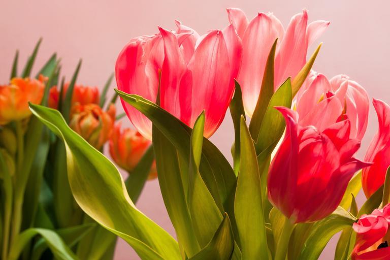 Keywords: tulips bouquet spring nature flowers schnittblume blossom bloom plant flora flower bracts red orange yellow green pink lily macro spring awakening frühlingsanfang