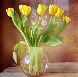 Keywords: tulips bouquet yellow flowers spring flowers cut flowers vase glass spring
