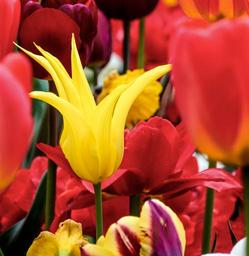 Keywords: tulips yellow spring flowers close garden red cup