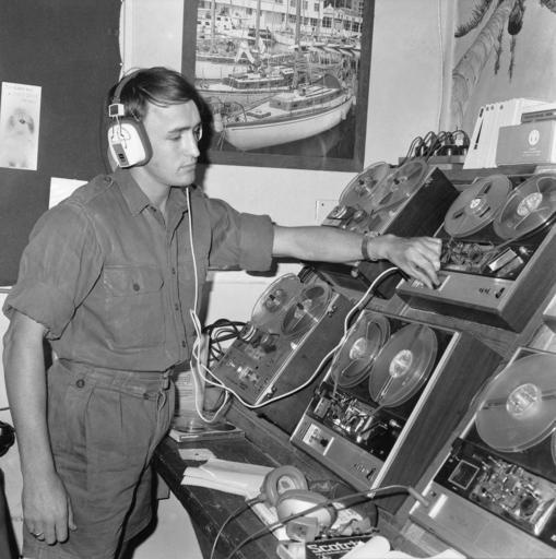 | Keywords: black and white blackandwhite australian war memorial australianwarmemorial unesco audiovisual heritage recording blackandwhite people monochrome indoor black and white Photographer: John Geoffrey Fairley Place: Vung Tau, Vietnam Signalman (Sig) Ian Thompson recording music on reel to reel tape for soldiers of the 1st Australian Logistic Support Group. Rights Info: No known copyright restrictions. This photograph is from the Australian War Memorial's collection www.awm.gov.au Persistent URL: www.awm.gov.au/collection/FAI/70/0197/VN/ Photographer: John Geoffrey Fairley Place: Vung Tau, Vietnam Signalman (Sig) Ian Thompson recording music on reel to reel tape for soldiers of the 1st Australian Logistic Support Group. Rights Info: No known copyright restrictions. This photograph is from the Australian War Memorial's collection www.awm.gov.au Persistent URL: www.awm.gov.au/collection/FAI/70/0197/VN/ |