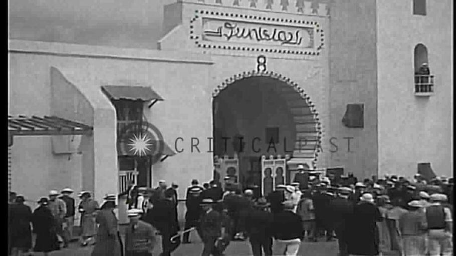| Keywords: Tunisian Exhibit Entrance.jpg en Visitors at entrance to Tunisian Village exhibit of the Chicago « Century of Progress » World's Fair of 1933-34 fr Les visiteurs à l'entrée du village tunisien de l'exposition universelle « Un siècle de progrès » de Chicago de 1933 à 1934 ar الزوار أمام مدخل القرية التونسية في المعرض العالمي « قرن من التقدم » الذي إحتضنته شيكاغو من 1933 إلى 1934 http //www criticalpast com/video/65675024284_Worlds-Fair_Belgium-Village_Tunisian-Village_Avenue-of-Flags Newsreel clip from the Motion Picture Division of the U S National Archives CriticalPast 1933 Universal City Studios see http //www archive org/details/universal_newsreels Century of Progress 1933 in Chicago Exposition pavilions of Tunisia |