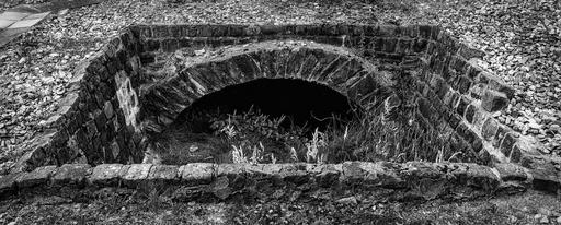 Keywords: tunnel bunker bricked catacombs underground hole deep black and white grotto below dark mysterious prison caught