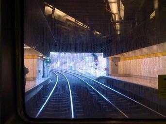 | Keywords: Tunnel exit at Jesmond Metro station from northbound train 2010-03-01.jpg Jesmond station on the Tyne and Wear Metro The view from the front of a Metrocar as it comes to stop in Platform 2 en route to Airport station own Metrognome2 2010-03-01 Jesmond Metro station |
