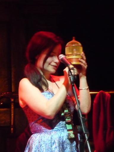Keywords: Tunng2.jpg en Becky Jacobs of Tunng with windup bird in cage performing with Tinariwen at Reading Concert Hall Own Sciencebloke 2009-03-27 Folk music Culture of England Musicians from the United Kingdom Electronic music People with birds