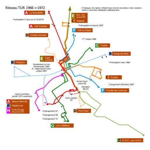 Keywords: Tur1972.svg Réseau des Transports Urbains de Reims en 1972 et modifications depuis 1966 Buses network in Reims in year 1972 and improvements since 1966 Plus d'un siècle de transports en commun à Reims M Chenu et M Jailliard adapté par moi-même / adapted by myself 2007-11-16 Daiima <br /><div align center > toccolours width 75 cellpadding 7 +Les évolutions du réseau T U R de 1873 à 2000<br />Evolutions of the bus network in Reims from 1873 to 2000 ccccff align center Carte précédente<br />Previous map ccccff align center Carte actuelle<br />This map ccccff align center Carte suivante<br />Next map - FEFF7F align center Image Tur1962 svg FEFF7F align center Image Tur1972 svg FEFF7F align center Image Tur1976 svg - E6FF7F align center 1956 > 1962 > 1965 E6FF7F align center 1966 > 1972 > 1972 E6FF7F align center 1973 > 1976 > 1978 </div> Historical public transport maps of Reims |