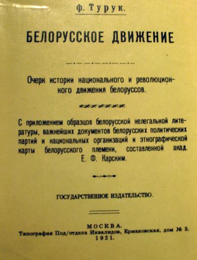 | Keywords: Tur bel dvizh.JPG  be-tarask Ф Ту ук - Бела ускі Рух  а ыс гісто ыі нацыянальнага і  эвалюцыйнага  ухаў Бела усі 1921  асква ru Ф Ту ук - Бело усское Движение Оче к исто ии и  еволюционного движения Бело уссов  осква 1921 2012-01-26 own Valerikpunk PD-old Uploaded with UploadWizard 1921 books ImageNote 1 765 23 653 174 2132 2816 2 ru Ф Ту ук ImageNoteEnd 1 ImageNote 2 549 2004 1160 225 2132 2816 2 ru Госуда ственное Издательство ImageNoteEnd 2 ImageNote 3 169 2412 1916 235 2132 2816 2  ОСКВА <br /> Типог афия Под/отдела Инвалидов Е маковская дом  3 <br /> 1921 ImageNoteEnd 3 |