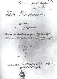| Keywords: Turgenev 1860 Manuscriptt.jpg en The manuscript of the titlepage of 'On the Eve' 1860 ru Титульный лист укописи омана акануне 1860 2002-12-13 http //www turgenev org ru/art-gallery/zhizn-iskusstvo-vremya/050 htm Ivan Turgenev / Иван Ту генев cc-zero Uploaded with UploadWizard Autographs of Ivan Turgenev |