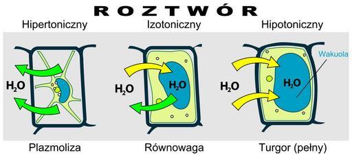 | Keywords: Turgor pressure on plant cells diagram pl.svg In biology turgor pressure or turgidity is the pressure of the cell contents against the cell wall in plant cells determined by the water content of the vacuole resulting from osmotic pressure Mechanizm osmozy w komórkach roślinnych Turgor_pressure_on_plant_cells_diagram svg 2009-05-27 23 05 UTC Turgor_pressure_on_plant_cells_diagram svg LadyofHats derivative work Michał Komorniczak <span class signature-talk >talk</span> Translation M Komorniczak Turgor_pressure_on_plant_cells_diagram svg LadyofHats Other versions/Turgor pressure on plant cell original upload log This image is a derivative work of the following images File Turgor_pressure_on_plant_cells_diagram svg licensed with PD-user 2007-11-08T11 23 51Z LadyofHats 618x244 40916 Bytes <nowiki>removed entity data</nowiki> 2007-02-18T14 54 30Z LadyofHats 618x244 40984 Bytes <nowiki>H 2O</nowiki> 2007-02-17T13 17 00Z LadyofHats 618x244 41388 Bytes <nowiki> In biology turgor pressure or turgidity is the pressure of the cell contents against the cell wall in plant cells determined by the water content of the vacuole resulting from osmotic pressure </nowiki> Uploaded with derivativeFX Plant cell diagrams Diagrams in Polish |