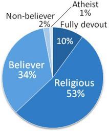 | Keywords: Turkey religious background.png en The religiosity levels of Turkish people according to KONDA research firm http //www konda com tr/html/dosyalar/ghdl t_en pdf note the figures in this chart have been rounded/approximate <br/> Fully devout person who fullfills all religious obligations<br/>Religious person who tries to fullfill religious obligations<br/>Believer person who believes but does not fullfill religious obligations<br/>Non-believer person who does not believe in religious obligations<br/>Atheist person with no religious conviction own BigCoolGuyy 2010-09-13 cc-zero Religion in Turkey |
