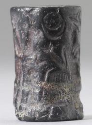 | Keywords: Turkish - Cylinder Seal with a Seated God - Walters 42800 - Side B.jpg Seals first appeared in Cappadocia in the early 2nd millennium BC Mesopotamian influence can be seen in the use of hematite and elements such as the worshiper before the seated deity and the sun disk inside a crescent Typically Cappadocian however is the crowded composition with a standing man and many animals The people of this region had contact with the Mesopotamians and also with the Assyrians who established a trading center in the region ca 2000 1700 BC carved hematite cm 1 8 1 2 accession number 42 800 13989 Sadie Jones Mrs Henry Walters New York date and mode of acquisition unknown Sale Joseph Brummer New York 1941 Walters Art Museum 1941 by purchase Museum purchase 1941 place of origin Cappadocia Turkey Walters Art Museum license Cylinder seals in the Walters Art Museum Art from Turkey Media contributed by the Walters Art Museum needs category review |