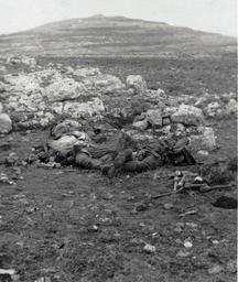 | Keywords: Turkish dead at Tell el Ful in 1917 LofC ppmsca-13291.00048v.jpg en Turkish dead at Tell el Ful 1917 LC-DIG-ppmsca-13291-00048 digital file from original page 17 no 48 Information field Notes Arrangement Photographs arranged chronologically Photographs were created by the photographers of the American Colony Photo Department located in Jerusalem Founded in the late 1890s by Elijah Meyers the photo agency was headed during its heyday ca 1903-1933 by Lewis Larsson whose staff photographers included Erik Lind Lars Lind Furman Baldwin and G Eric Matson It transitioned into the Matson Photo Service around 1940 with photography by Matson Hanna Safieh Joseph H Giries and others John D Whiting contributed periodically to the work of both agencies For more information see http //hdl loc gov/loc pnp/pp matpc and http //www loc gov/rr/print/coll/629_whiting html Inscription on inside cover With all good wishes to dear Grace John from Edith Eric Album was probably compiled by G Eric and Edith Matson as a gift to John and Grace Whiting Album unpaginated album page numbers supplied by Library staff Pages 66 77 83 103 105 107-111 are blank LOT title devised by Library staff John D Whiting's diaries correspondence and other materials are located in the Library of Congress Manuscript Division Papers of John D Whiting Forms part of Visual materials from the papers of John D Whiting Library of Congress Transfer; Manuscript Division; 2006; DLC/PP-2006 051 28 html LOC-image ppmsca 13291 http //www loc gov/pictures/item/2007675259/ World War I and the British Mandate in Palestine 1917-1926 html Information field Direct link http //memory loc gov/phpdata/pageturner php type contactminor cmIMG1 /pnp/ppmsca/13200/13291/00048t gif agg ppmsca item 13291 caption 48 memory loc gov html American Colony Jerusalem Photo Department photographer Information field Related Names Whiting John D John David 1882-1951 photographer Larsson Lewis photographer Matson G Eric GÀstgifvar Eric 1888-1977 photographer html 1917 PD-Matson Original upload log Turkish dead at Tell el Ful PD-US-1923-abroad </nowiki> Uploaded with UploadWizard Battle of Jerusalem 1917 Sinai and Palestine Campaign World War I and the British Mandate in Palestine ppmsca 13291 |