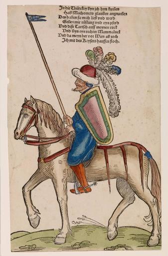 | Keywords: Turkish Horseman (Renegade).jpg en According to the text this horseman wielding a lance is a renegade He has converted to 'Mohammed's faith' in Turkey This is the only rhyme in which Hans Sachs made any reference to Islam On the whole people knew very little about the religion of the Turks 1530 http //collectie boijmans nl/en/collection/mb-2010-2-l- 28pk 29 Creator Niklas Stör other versions Custom license marker 2015 12 07 PD-art-100 16th-century woodcuts of people 16th-century cavalry Lancers Prints in the Museum Boijmans Van Beuningen Niklas Stör Uploaded with UploadWizard |