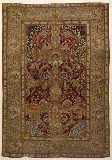 | Keywords: Turkish - Prayer Rug with Floral and Ornamental Designs - Walters 814 (2).jpg During their daily prayers Muslims traditionally roll out small rugs to cover the ground creating a ritually clean space for their devotions Likewise the floors of mosques which are places of communal worship are covered with carpets on which Muslims perform their sequence of prayers Islamic prayer rugs vary enormously in decoration but they frequently feature a framed panel with twin columns supporting an arch that represents the mihrab or niche in the wall of a mosque indicating the direction of prayer toward Mecca The design of this 16th-century Ottoman rug depicts a beautiful floral pattern with blossoms and leaves; the main border displays medallions with tulips and hyacinths While the central arch has no columns to reflect the prayer niche the arrangement of the blossom pattern is a kind of floral translation of the architecture century 16 Early Modern knotted wool pile silk warp and weft cm 176 5 127 3 accession number 81 4 17044 Henry Walters Baltimore 1927 by purchase date and mode of acquisition unknown Walters Art Museum Henry Walters Acquired by Henry Walters 1927 Prayer Rugs The Textile Museum Washington; The Montclair Art Museum Montclair 1974-1975 The Eastern Carpet in the Western World Hayward Gallery London 1983 Beyond the Pyramids Geometry and Design in the Carpets of Egypt 1450-1750 The Textile Museum Washington 1991 place of origin Anatolia Turkey <gallery> File Turkish - Prayer Rug with Floral and Ornamental Designs - Walters 814 jpg </gallery> Walters Art Museum license 2D Islamic art in the Walters Art Museum Textiles in the Walters Art Museum Art from Turkey Ottoman carpets Prayer rugs |