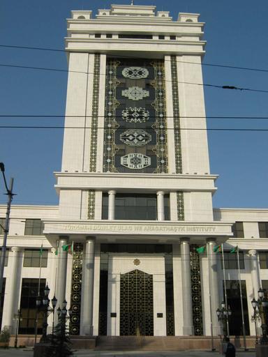 | Keywords: Turkmen state institute of transport and communication2.JPG  en Turkmenistan state institute of transport and communication Ashgabat Turkmenistan 2009 year photo ru Ту кменский госуда ственный институт т анспо та и связи Ашхабад Ту кменистан Фото 2009 года own ILMur 2009-10-12 Buildings in Aşgabat Cc-zero |