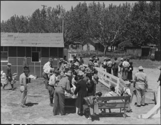 | Keywords: Turlock, California. Baggage is inspected as families arrive at Turlock Assembly center. Evacuees . . . - NARA - 537642.jpg Scope and content The full caption for this photograph reads Turlock California Baggage is inspected as families arrive at Turlock Assembly center Evacuees of Japanese ancestry will be transferred later to War Relocation Authority centers where they will spend the duration General notes 537642 Local identifier 210-G-C295 Department of the Interior War Relocation Authority 02/16/1944 - 06/30/1946 NARA-Author Lange Dorothea 1895-1965 Photographer 1372774 <br /> Still Picture Records Section Special Media Archives Services Division NWCS-S National Archives at College Park 8601 Adelphi Road College Park MD 20740-6001 1942-04-02 Record group Record Group 210 Records of the War Relocation Authority 1941 - 1989 Record group ARC 537 Central Photographic File of the War Relocation Authority compiled 1942 - 1945 Series ARC 536000 File unit File unit ARC Variant control numbers NAIL Control Number NWDNS-210-G-C295 Other versions <gallery> File Turlock _California _Baggage_is_inspected_as_families_arrive_at_Turlock_Assembly_center _Evacuees_ _ _ _-_NARA_-_537642 tif tif File Turlock _California _Baggage_is_inspected_as_families_arrive_at_Turlock_Assembly_center _Evacuees_ _ _ _-_NARA_-_537642 jpg jpg </gallery> NARA-cooperation PD-USGov Dorothea Lange Turlock Assembly Center |
