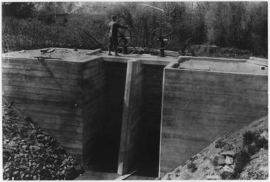 | Keywords: "Turnout Moiese lateral 27MA, concrete box-head of pipe line." - NARA - 293341.jpg Scope and content This image documents investigations and construction on various units of the Flathead Irrigation Project The Project was initiated to determine rights and distribute water originating on the Flathead Indian Agency in Montana to both tribal and non-tribal land The establishment of the Reservation in 1855 preceded Montana statehood by nearly 35 years and presented many challenges in establishing senority and providing for equitable distribution of water for the irrigation of farms and ranches General notes 293341 Local identifier Department of the Interior Bureau of Indian Affairs Flathead Irrigation Project 1947 - 1952 NARA's Rocky Mountain Region Denver NRGA Building 48 Denver Federal Center West 6th Avenue and Kipling Street Denver CO 80225-0307 1914-08-11 Record group Record Group 75 Records of the Bureau of Indian Affairs 1793 - 1999 Record group ARC 404 Glass Negatives and Photographs compiled 1911 - 1939 Series ARC 293334 File unit Glass Negatives and Photographs 1911 - 1939 File unit ARC 293335 Variant control numbers NAIL Control Number NRG-75-NEGS PHOTOS-97221-F269 Other versions <gallery> File Turnout_Moiese_lateral_27MA _concrete_box-head_of_pipe_line _-_NARA_-_293341 tif tif File Turnout_Moiese_lateral_27MA _concrete_box-head_of_pipe_line _-_NARA_-_293341 jpg jpg </gallery> NARA-cooperation PD-USGov Flathead irrigation project |