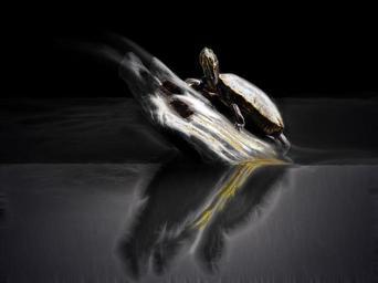Keywords: turtle black and white mysterious mirroring colourless water wood