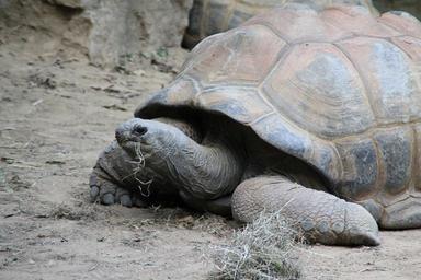 Keywords: turtle eating grass huge old massive heavy green brown hay dirt reptile feed slow shell soft tortoise