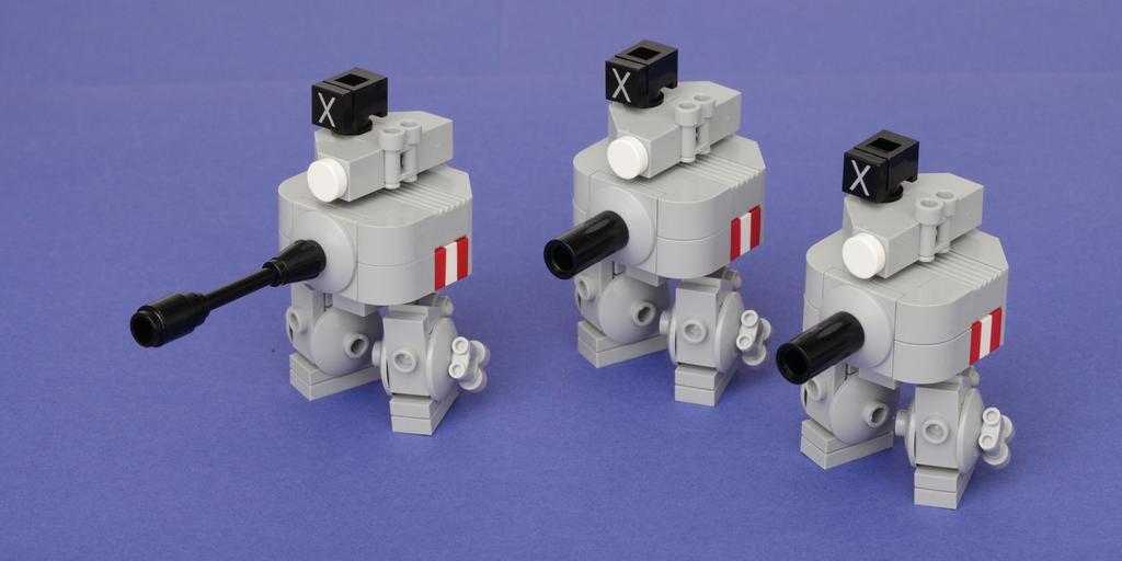 | Keywords: canon 100mm canon100mm lego mfz mobile frame zero mobileframezero twanks mecha microscale moc i stand with twankus istandwithtwankus These are properly outfitted as the standard "soldier" configuration for Mobile Frame Zero. The top turret contains the single shot rocket launcher, a radar (spotting system), and a smoke grenade launcher (armor system). The legs are outfitted with jump jets (movement system), and I think the main gun is pretty obvious (weapon system). These are properly outfitted as the standard "soldier" configuration for Mobile Frame Zero. The top turret contains the single shot rocket launcher, a radar (spotting system), and a smoke grenade launcher (armor system). The legs are outfitted with jump jets (movement system), and I think the main gun is pretty obvious (weapon system). |