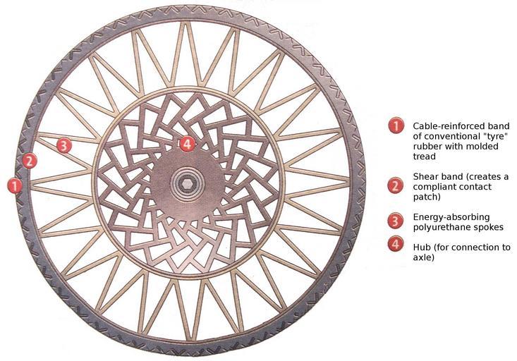 | Keywords: Tweel.JPG en A schematic of a Tweel tyre design This Tweel tyre design was the original design as developed by Michelin The schematic was based on an image from Plaza weekend 26 March 2005 own KVDP 2010-03-15 Convert to SVG technology Tweels Wheels Tires Michelin |