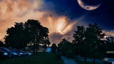 Keywords: twilight sky the sun cloud cover sunset evening night light the rays sun clouds evening clouds