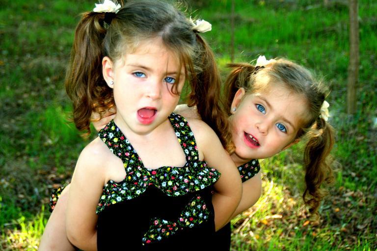 Keywords: twin sisters love girls blue eyes beauty innocence portrait double
