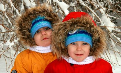 Keywords: twins brothers winter snow portrait smile blue eyes