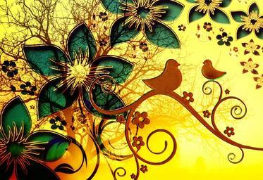 Keywords: twitter birds curlicue swirl kringel decoration ornament background image line eddy verschnörkelt locke plant leaf abstract design postcard yellow flowers tree aesthetic branches